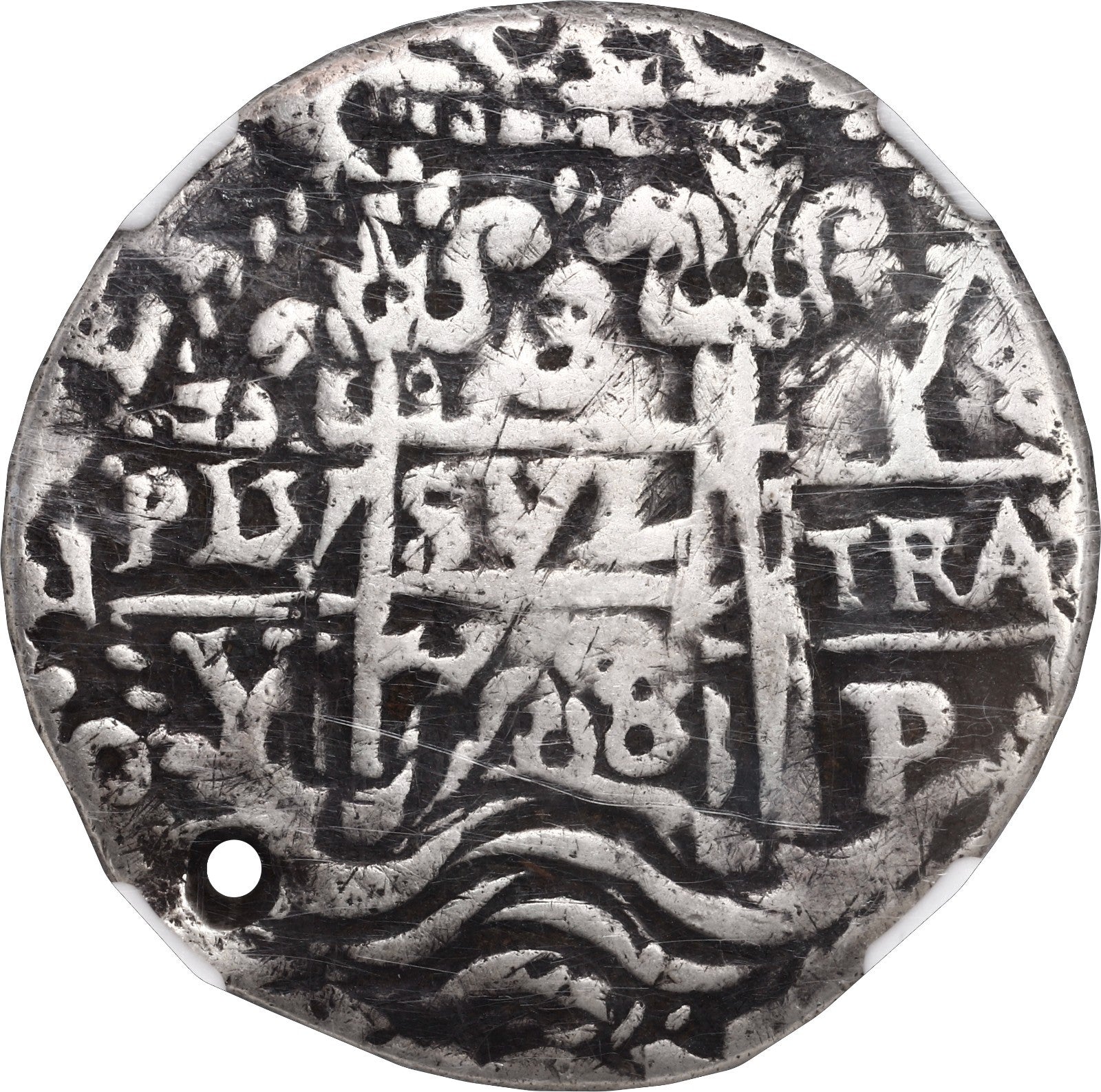 BOLIVIA, Potosí, cob 8 reales Royal (galano), 1708 Y, NGC VF details / holed, scratches.