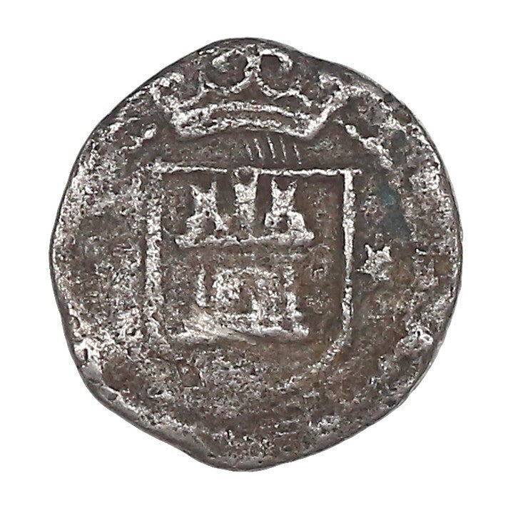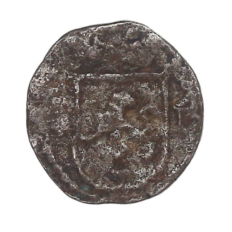 0.76 gram. VF with some nice detail in spite of the surface corrosion, clear castle with crown above, lion a little weak but visible.