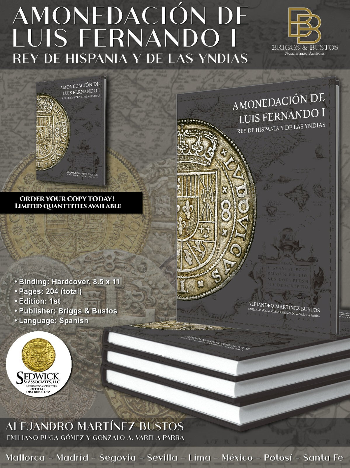 This comprehensive guide, "Amonedación de Luis Fernando I – Rey de Hispania y de las Yndias," serves as a definitive reference for all coinage produced during the short reign of Luis I of Spain. It covers the mints that operated both in the Iberian Peninsula and across the Spanish colonial territories in the Americas. The book details all known coins minted in his name, reflecting the economic and political influence of the Spanish crown in the early 18th century.