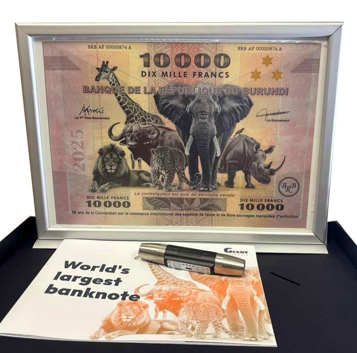 BURUNDI, Banque de la Republique du Burundi, 10,000 francs, 2025, serial number BRB AF 00000874A, world's largest legal tender banknote.