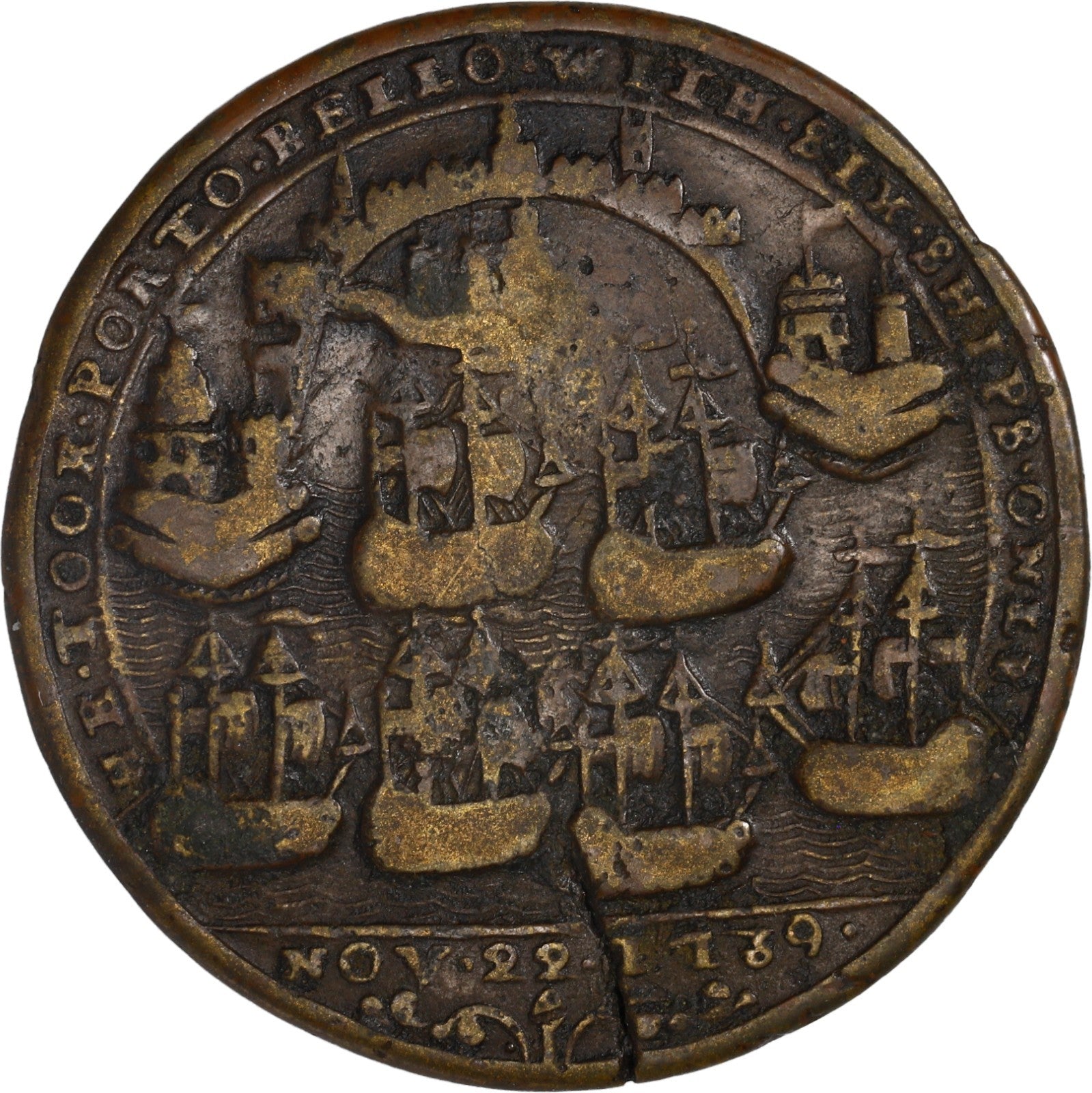 GREAT BRITAIN, copper alloy Admiral Vernon medal, 1739, Vernon and Fort Chagre / Porto Bello, ex-Adams.