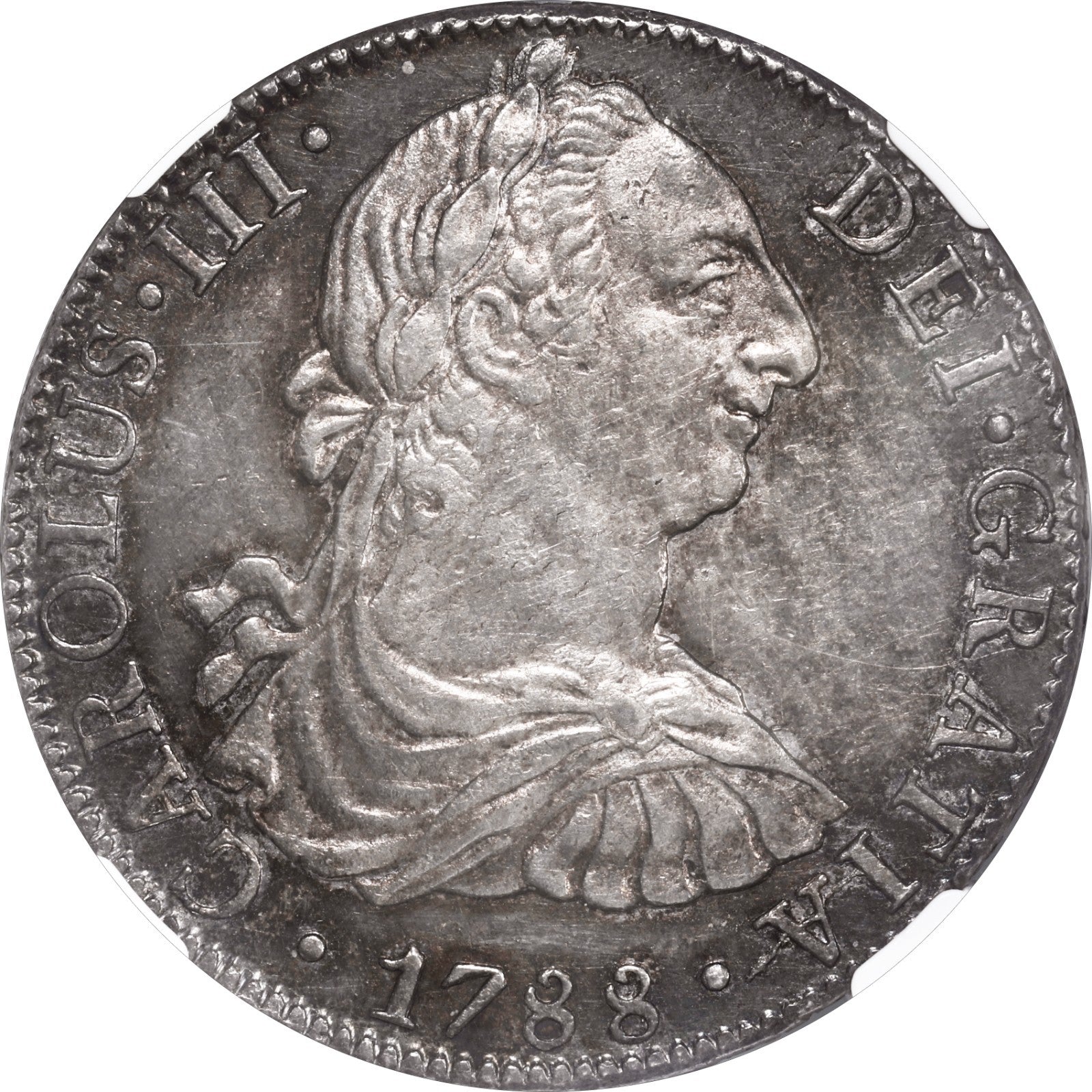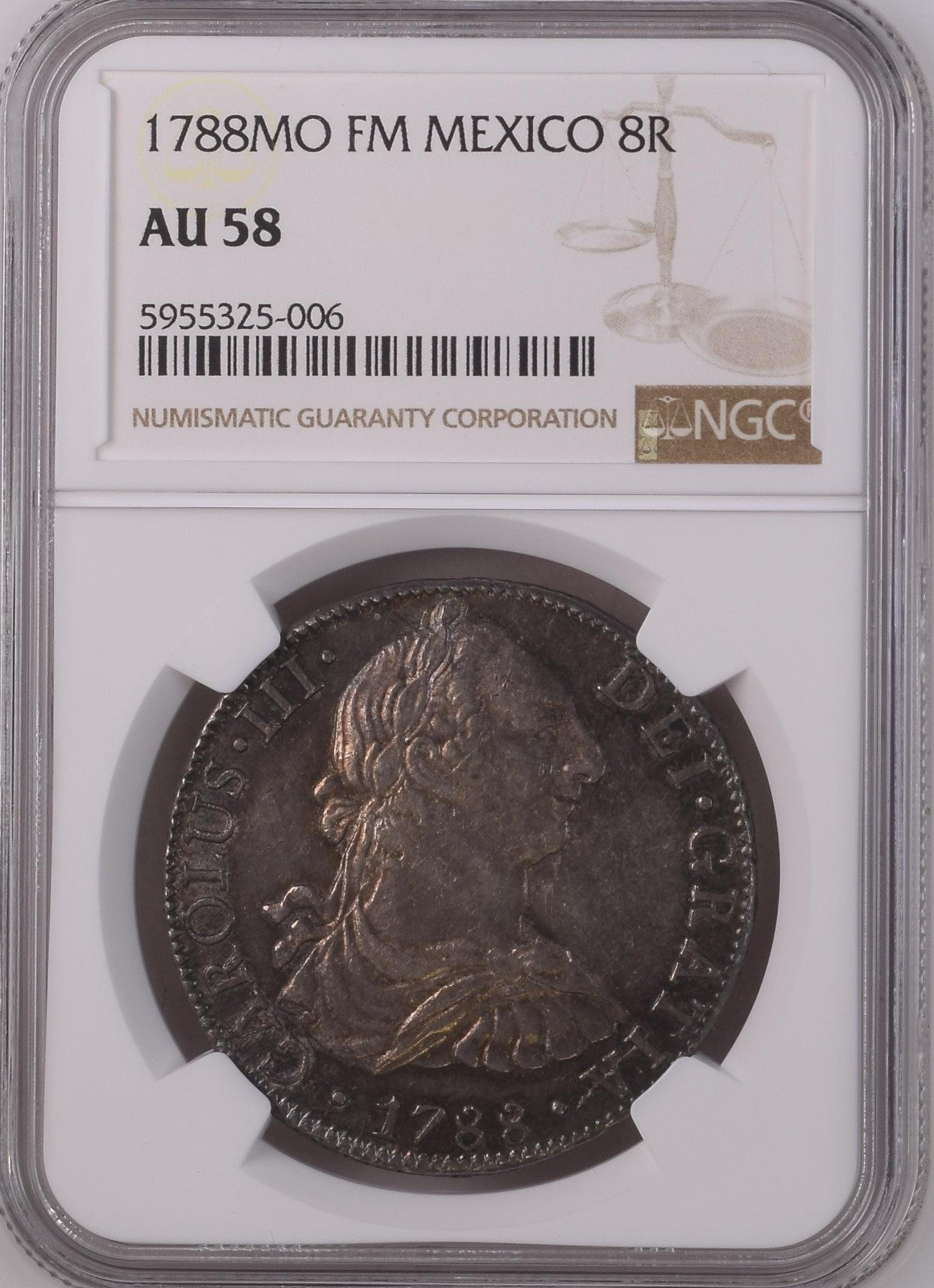 MEXICO, Mexico City, bust 8 reales, Charles III, 1788 FM, NGC AU 58.