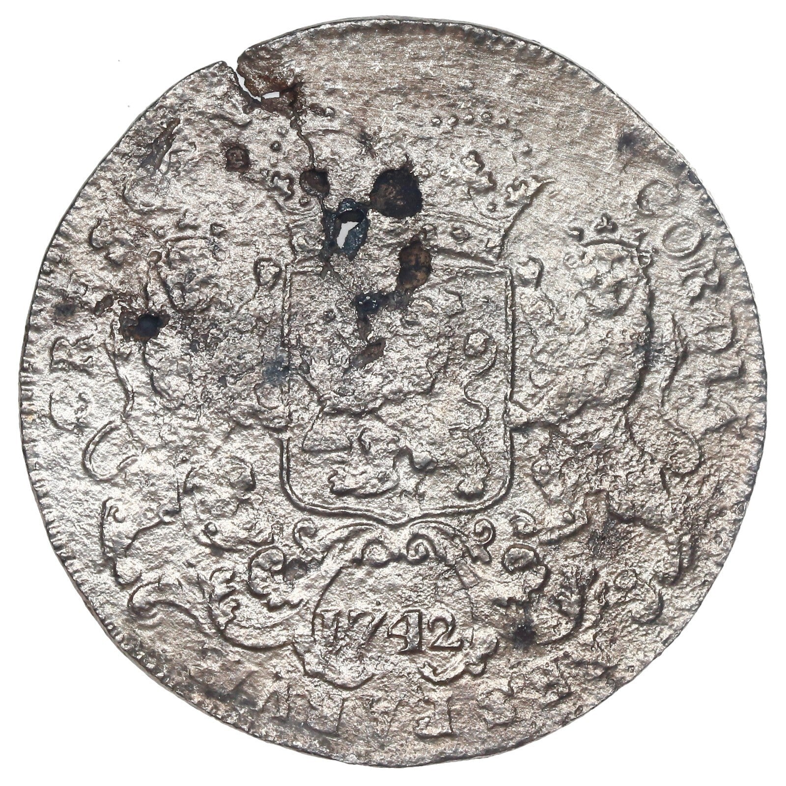 KM-92.1; Delm-1031. 25.86 grams. Corroded surfaces with a few small pits from impurities in the planchet, silvery surfaces with much detail still showing.