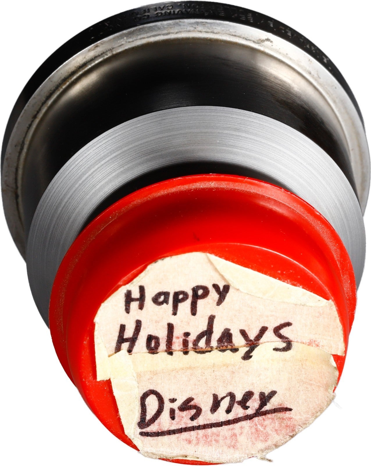 With original red protective cap, hand marked “Happy Holidays Disney,” retained from the production period and enhancing provenance. Outer steel collar smooth and intact.