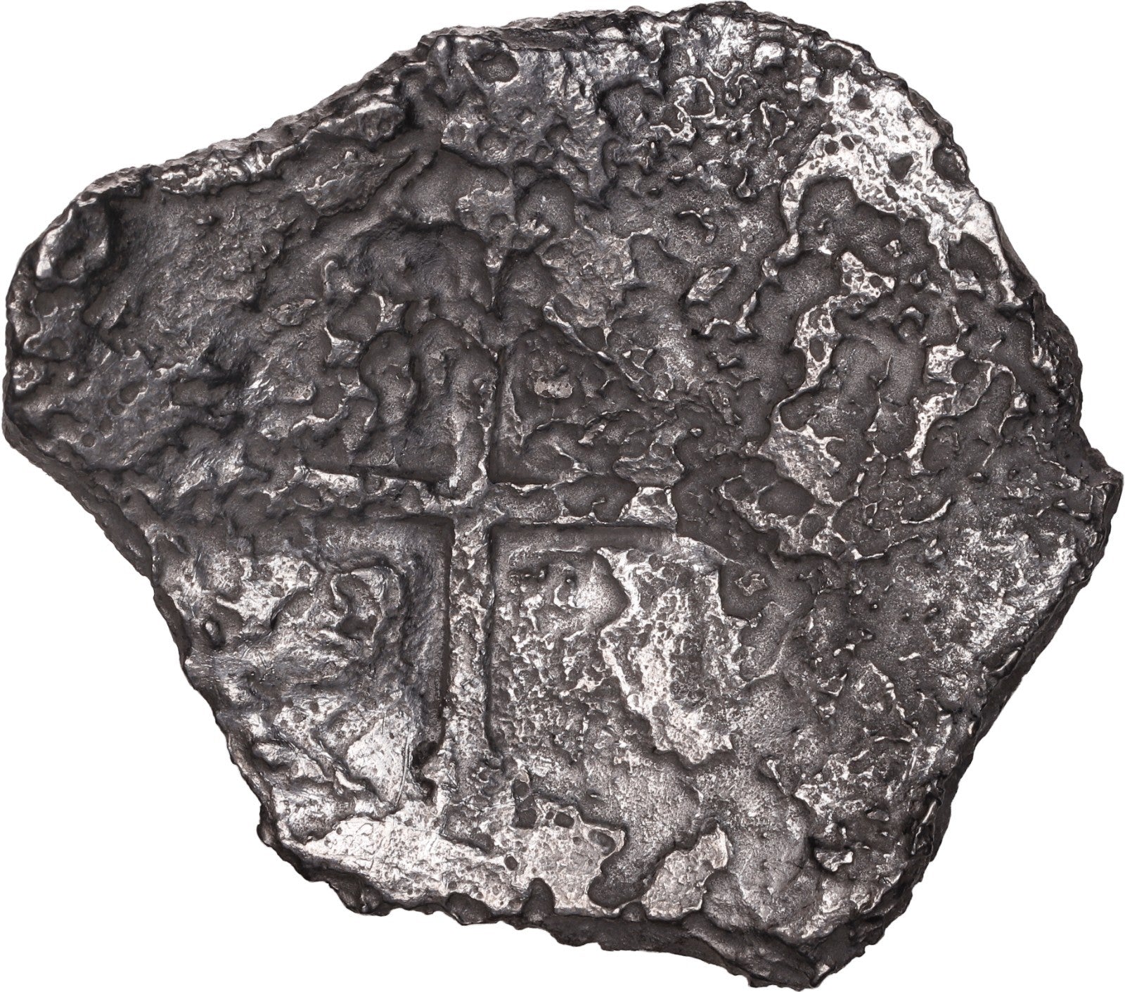 The Concepción was one of the most significant Spanish wrecks of all time, serving the Spanish with a loss of over 100 tons of silver and gold treasure. The almiranta of a 21-ship fleet, the Concepción was already in poor repair when the Europe-bound fleet encountered a storm in September of 1641, leaving her disabled and navigating under makeshift sails amid disagreement among its pilots about their location. Weeks later, she grounded on a reef in an area now named the Silver Shoals, just east of another shoal known as the Abrojos, which the pilots were trying to avoid. After another storm hit the wrecked ship and the admiral and officers left in the ship’s only longboat, the remaining crew resorted to building rafts from the ship’s timbers. Survivors’ accounts pointed to drowning, starvation and even sharks for the approximately 300 casualties. In the fallout that ensued, none of the survivors could report the wreck’s location with accuracy, so it sat undisturbed until New England’s William Phipps found it in 1687 and brought home tons of silver and some gold, to the delight of his English backers. The Concepción was found again in 1978 by Burt Webber, Jr., whose divers recovered some 60,000 silver cobs, mostly Mexican 8 and 4 reales, and also some Potosí and rare Colombian cobs, including more from the Cartagena mint than had been found on any other shipwreck. Unlike the Maravillas 15 years later, the Concepción did not yield any gold cobs in our time, and any significant artifacts found were retained by the government of the Dominican Republic who oversaw the salvage. The bulk of the silver cobs found on the
