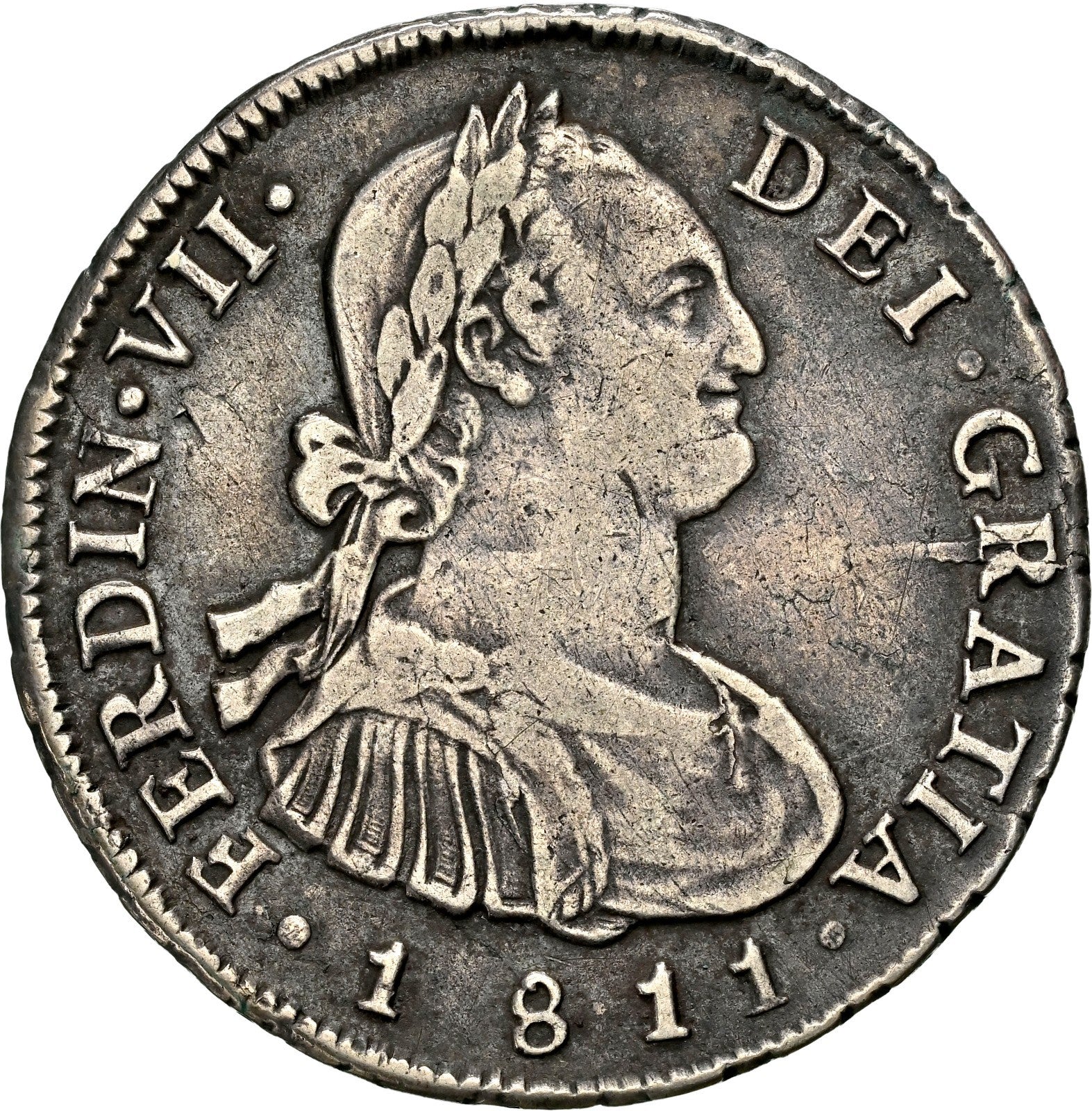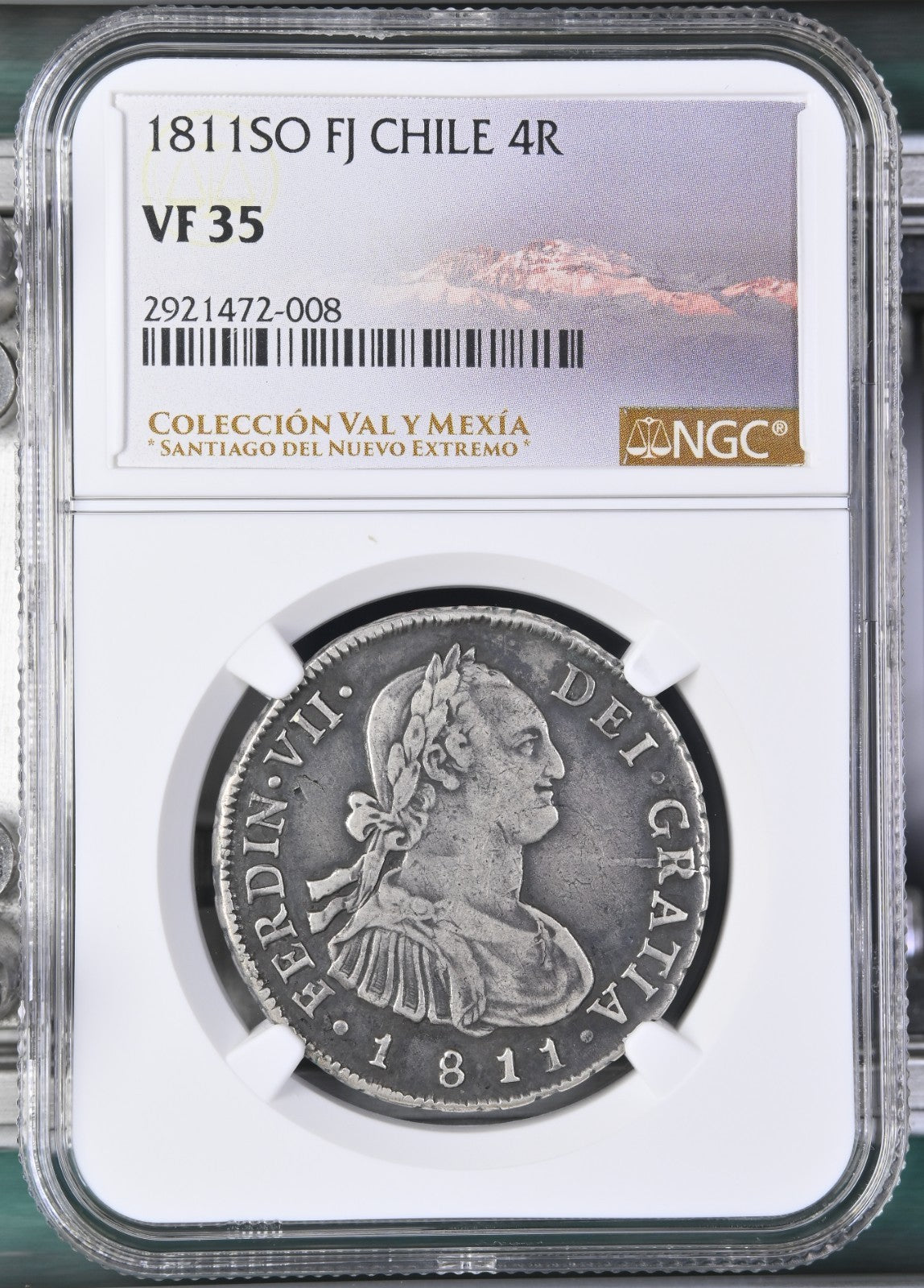 CHILE, Santiago, bust 4 reales, Ferdinand VII (bust of Charles IV), 1811 FJ, NGC VF 35 (Colección Val y Mexía Label).