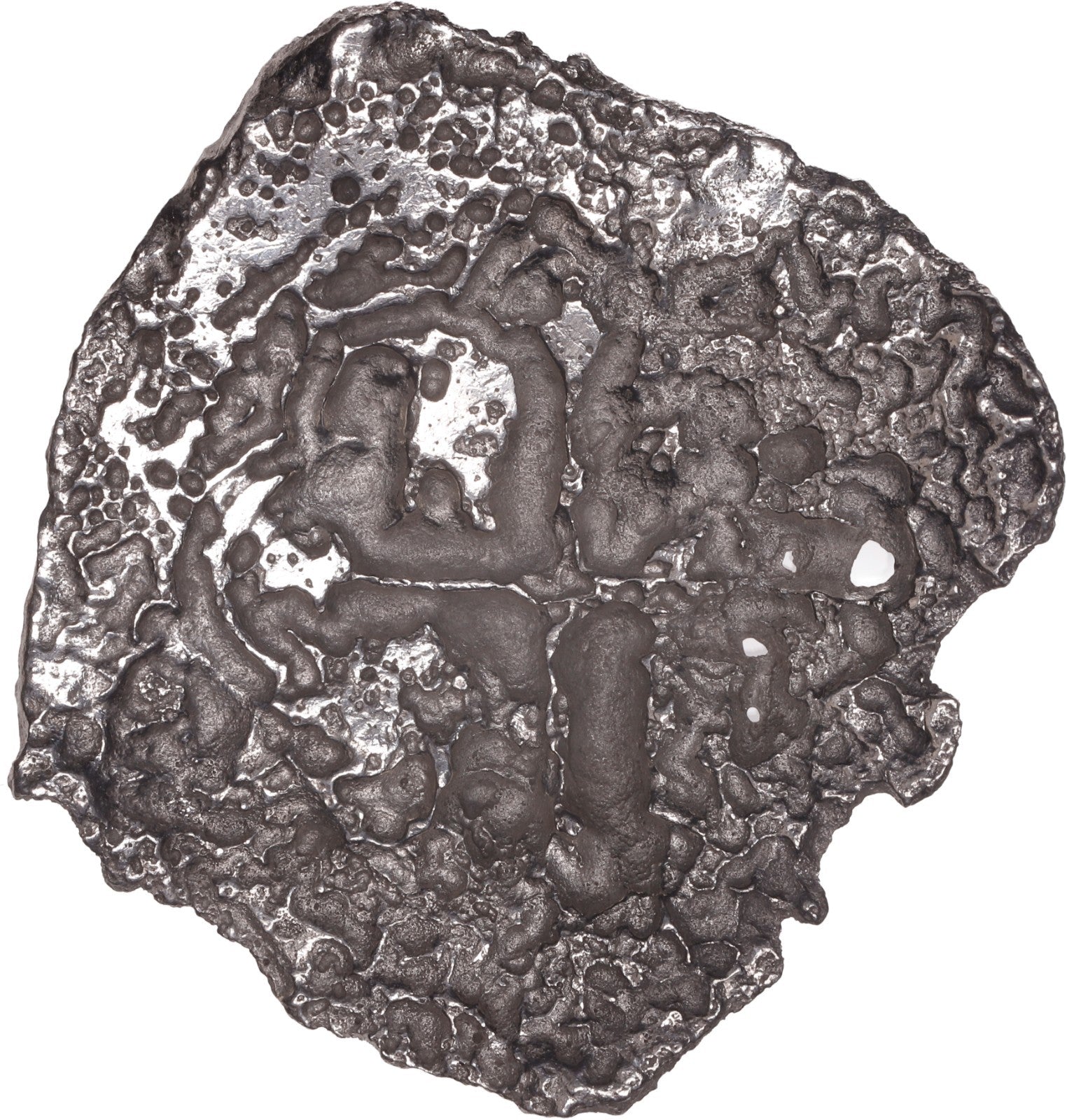 The Concepción was one of the most significant Spanish wrecks of all time, serving the Spanish with a loss of over 100 tons of silver and gold treasure. The almiranta of a 21-ship fleet, the Concepción was already in poor repair when the Europe-bound fleet encountered a storm in September of 1641, leaving her disabled and navigating under makeshift sails amid disagreement among its pilots about their location. Weeks later, she grounded on a reef in an area now named the Silver Shoals, just east of another shoal known as the Abrojos, which the pilots were trying to avoid. After another storm hit the wrecked ship and the admiral and officers left in the ship’s only longboat, the remaining crew resorted to building rafts from the ship’s timbers. Survivors’ accounts pointed to drowning, starvation and even sharks for the approximately 300 casualties. In the fallout that ensued, none of the survivors could report the wreck’s location with accuracy, so it sat undisturbed until New England’s William Phipps found it in 1687 and brought home tons of silver and some gold, to the delight of his English backers. The Concepción was found again in 1978 by Burt Webber, Jr., whose divers recovered some 60,000 silver cobs, mostly Mexican 8 and 4 reales, and also some Potosí and rare Colombian cobs, including more from the Cartagena mint than had been found on any other shipwreck. Unlike the Maravillas 15 years later, the Concepción did not yield any gold cobs in our time, and any significant artifacts found were retained by the government of the Dominican Republic who oversaw the salvage. The bulk of the silver cobs found on the